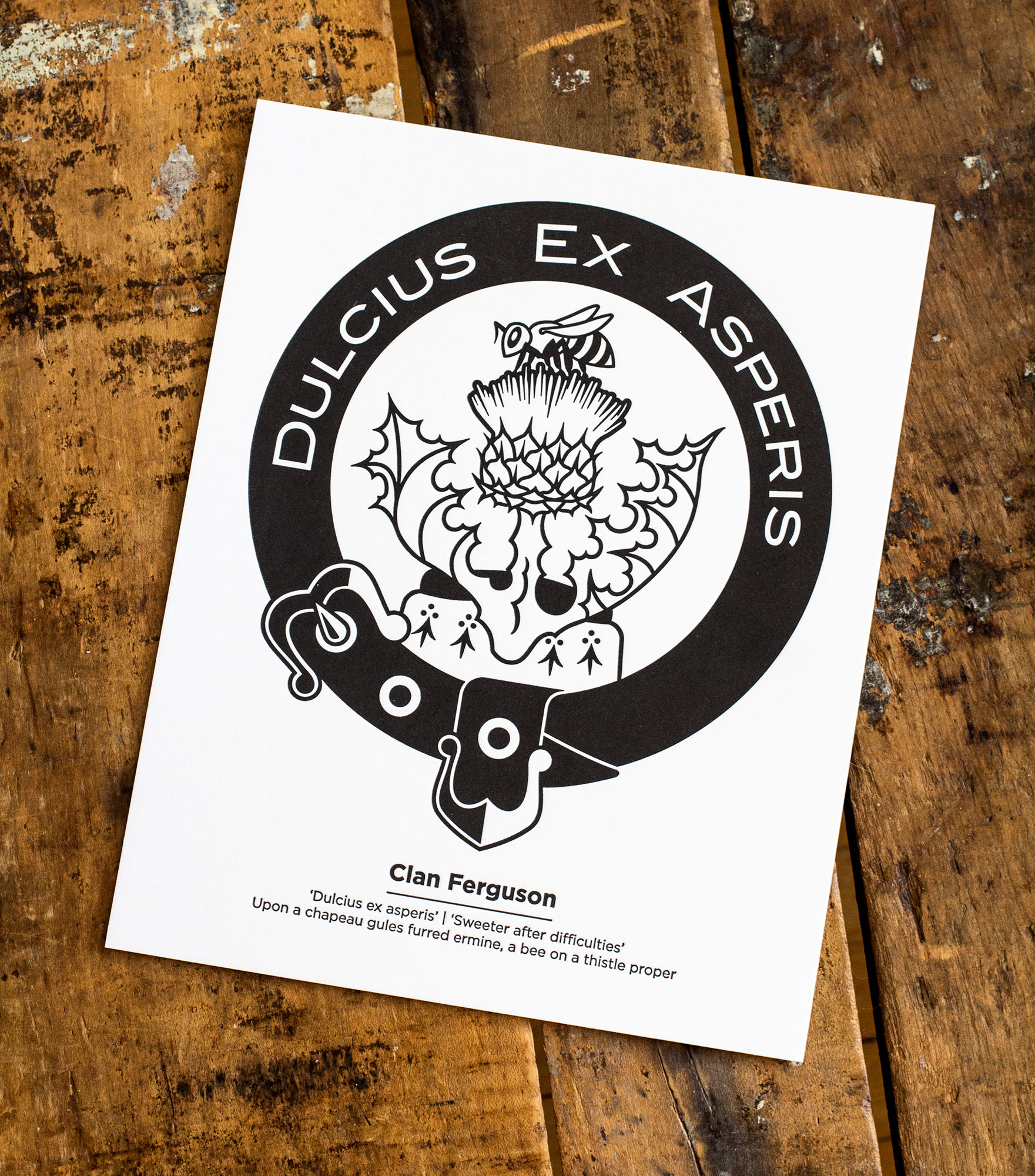Art direction & illustration based on traditional elements of the Ferguson crest.
